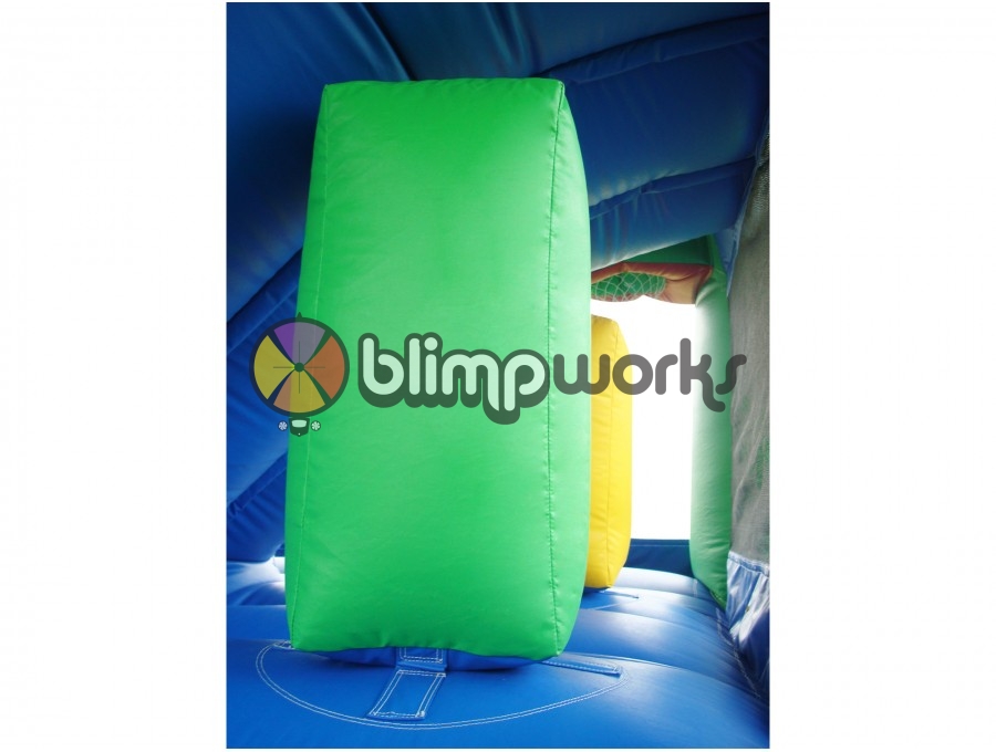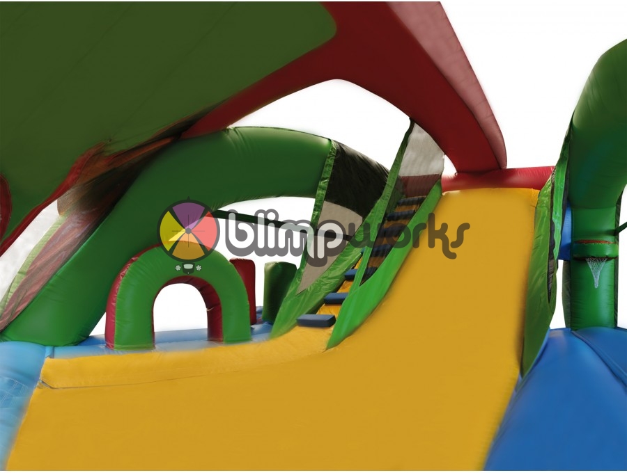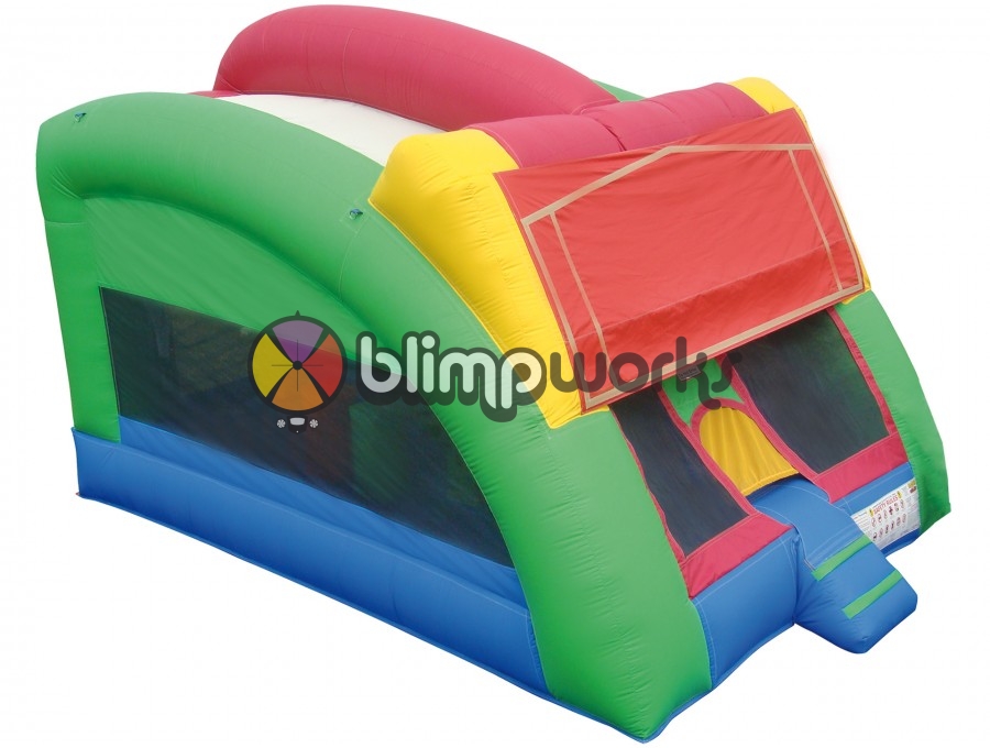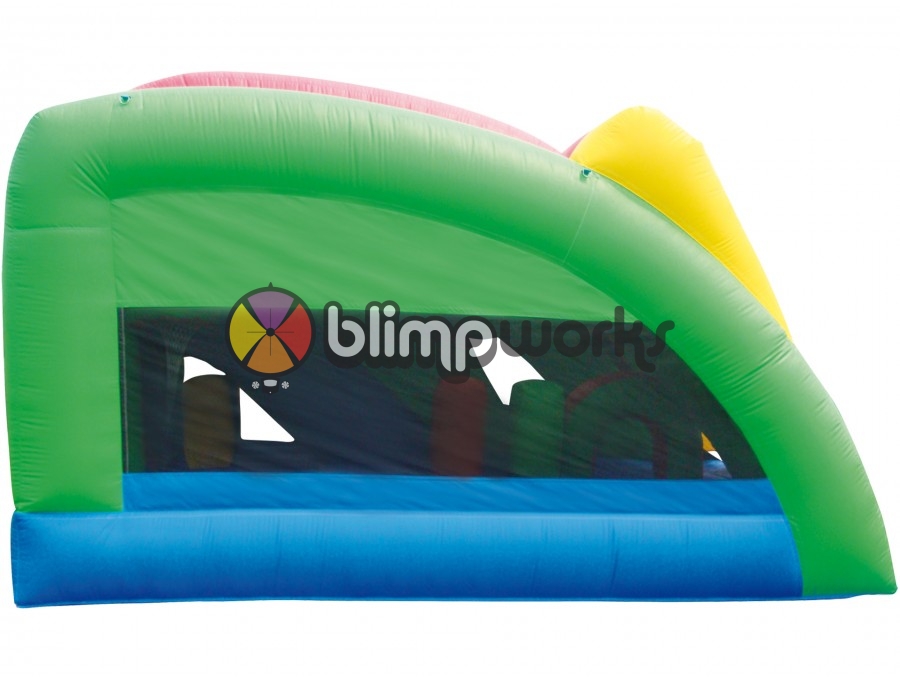 Kids and adults will love this colorful Inflatable Depot Combo. This game includes, jumping, crawling, and climbing areas, obstacles, pop-ups, a tunnel, and a super slide. The mesh walls add extra entertainment.