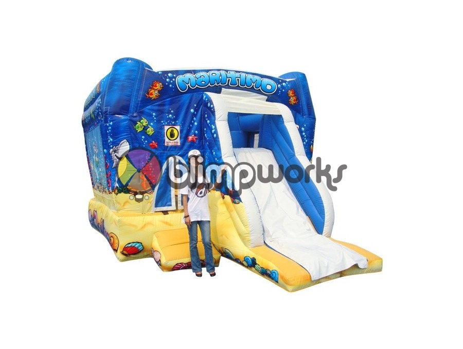 The Undersea Combo, developed by The Inflatable Depot, will make kids want to dive into this fantastic adventure under the sea! This Combo offers some exciting features such as obstacles, climbing steps and a wonderful slide. Check out our other combo theme: #954 Medieval Combo