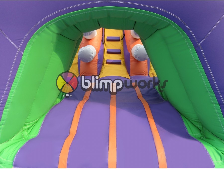 Nuestra nueva atracción inflable "KOOKY COMBO" ofrece dentro de un espacio compacto un tobogán doble, un puente elevado, dos líneas de competencia con túneles y obstáculos además de una apreciable área libre para saltar. Una vez mas, la creatividad Depot, una marca registrada, ofrece una solución de entretenimiento que lo tiene todo, diseño, diversión, seguridad, espacialidad y calidad.