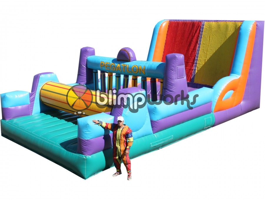 Juego novedoso para desafiar a tu rival, ya que para su uso se utilizan trajes de velcro, incluye obstáculos en diferentes formas hasta llegar a la pared de velcro en su finalización, pueden utilizarlo tanto chicos como adultos.